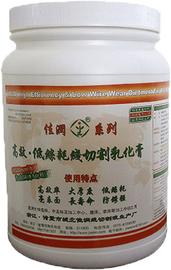 目前业内热议的在10000mm2/h条件下的切割实施起来并不难,任何厂家的机床,只要脉冲电源平均切割电流能到8A的,基本都能实现,而难就难在要能长久稳定切割并且不断丝。在这个前提下,首先要保证切割表面没有烧伤,因为一旦产生烧伤,极间必然处于非正常的冷却状态,电极丝也必然会产生严重损伤,极易导致断丝,长久稳定切割就无从谈起;此外,在这个条件下,一般切割电流已经在7A左右,电极丝即使在充分冷却前提下,因为受到放电通道中正离子的轰击,必定也会形成损伤,如果要长期稳定切割,必须要将这种损伤降低到最小程度,因此必须对电极丝采取保护措施。正是基于以上考虑,研制了JR3D高效低丝耗线切割乳化膏。