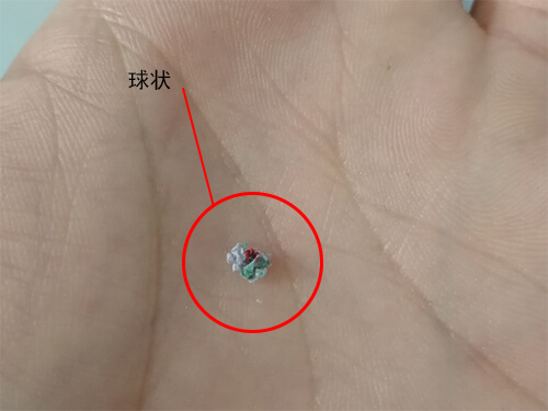 图5 刮削的油漆层用手搓捏后,手感有弹性,并呈球状